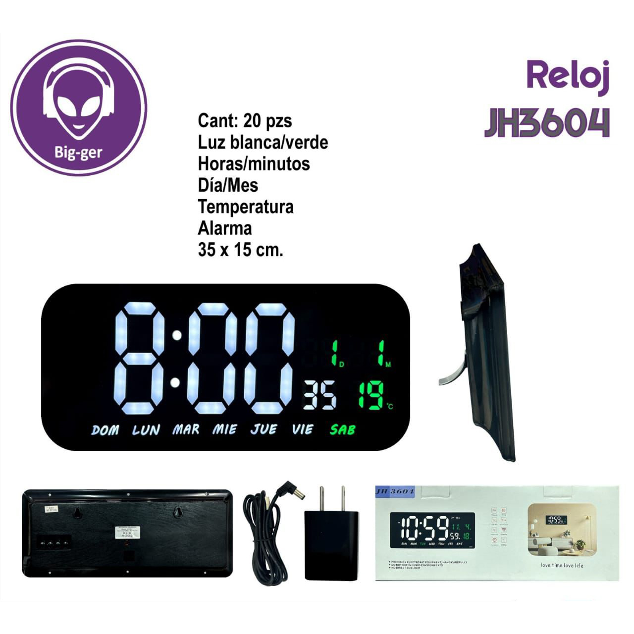 * Reloj Digital LED con medidor de temperatura y fecha para colocar en una pared o mesa, la luz es de color BLANCO Y VERDE